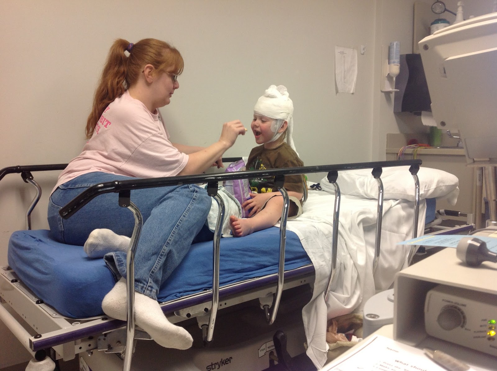 So we are at Detroit Children's and Cully is getting his head played with, wires connected and arm poked again. Last week was a 24 hour EEG and today a short EEG and a PET scan. Just checking all things to see what has become of the focus on Cully's thinker doodle.